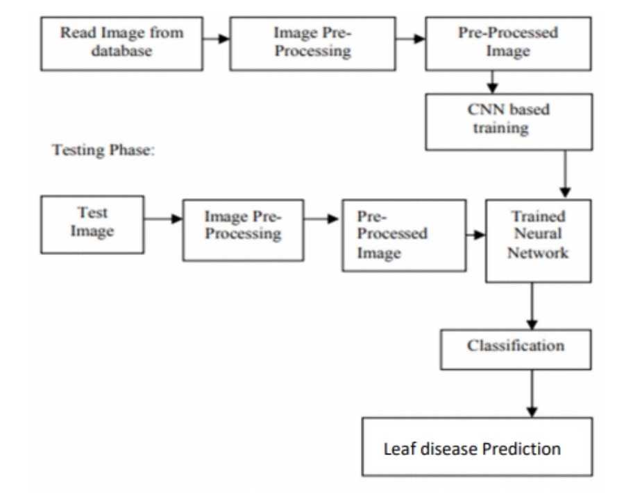 In 2nd phase: Image acquisition, Image Pre-processing, Classification and disease identification and pesticides identification.
