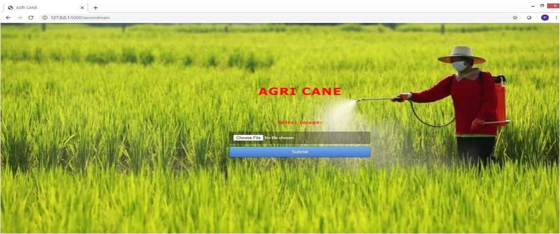 Here is the final webapp landing page where the farmer is expected to upload the image of the suagarcane leaf to check if it is diseased or not.